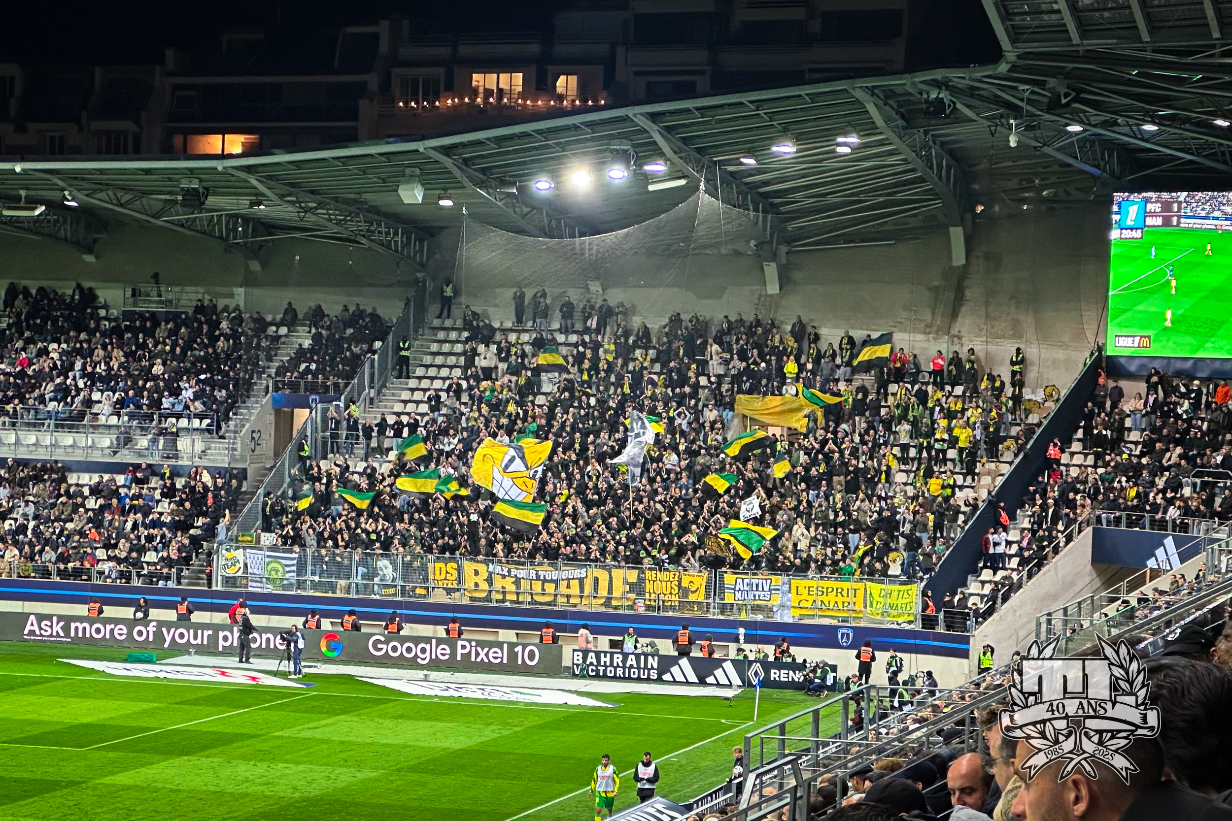 L’ambiance démarre correctement : la Loire pousse et le reste du stade suit. Mais les deux buts rennais encaissés coup sur coup refroidissent l’ardeur de la tribune. Jusqu’à la mi-temps, l’ambiance baisse clairement d’un ton, même si le minimum est assuré. Il faut dire que la première période est totalement à sens unique sur le terrain… et qu’à ce rythme, la soirée s’annonce longue.